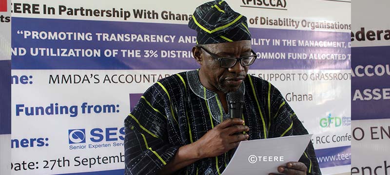 TEERE in partnership with the Ghana Federation of Disability Organisations with funding from the French Embassy in Ghana launched a project on the 27th September, 2017 dubbed “Promoting Transparency and Accountability in the management, disbursement procedures and Utilization of the 2% (now 3%) District Assembly common fund allocated to persons with disabilities”.