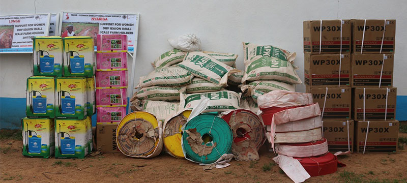 The CEO handed over farm inputs such as water pumps and accessories, knap sack sprayers, pesticides, bags of fertilizer and seeds. The project has also made arrangement for extension services to be at the disposal of the beneficiaries. TEERE field officers are to regularly visit the beneficiaries to report on the progress of work. For the local ownership of the project, local management committees comprising of local political authorities, representative of women and TEERE have been established to ensure the safety of the equipment and the sustainability of the project.