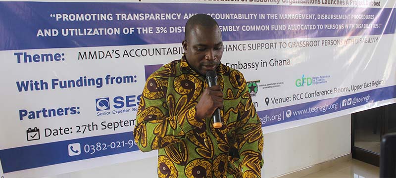 TEERE in partnership with the Ghana Federation of Disability Organisations with funding from the French Embassy in Ghana launched a project on the 27th September, 2017 dubbed “Promoting Transparency and Accountability in the management, disbursement procedures and Utilization of the 2% (now 3%) District Assembly common fund allocated to persons with disabilities”.