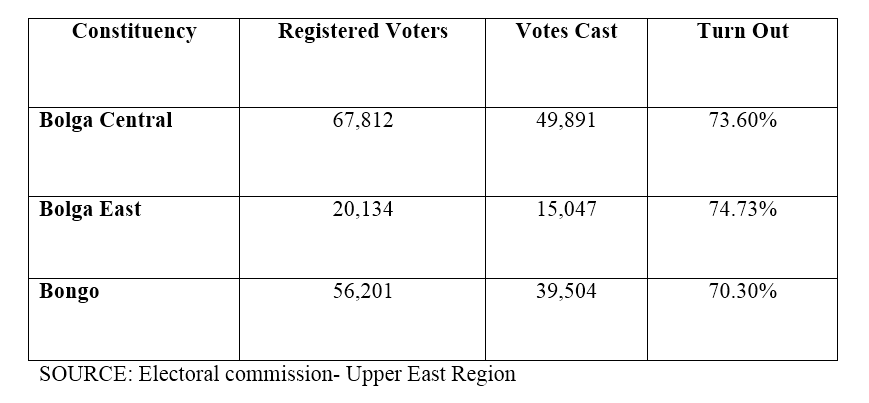 The table below indicates the statistics of registered voters and voter turnout;